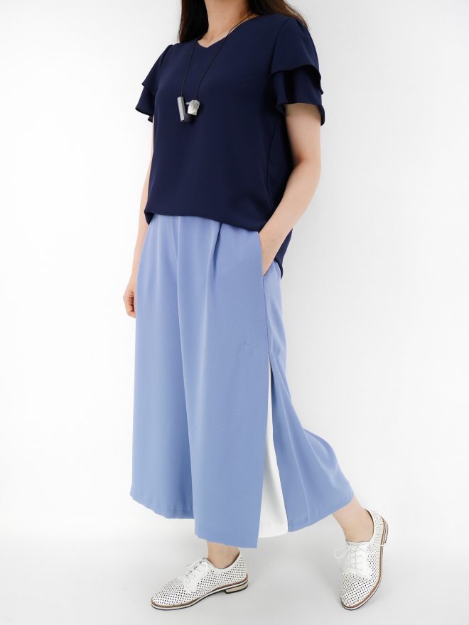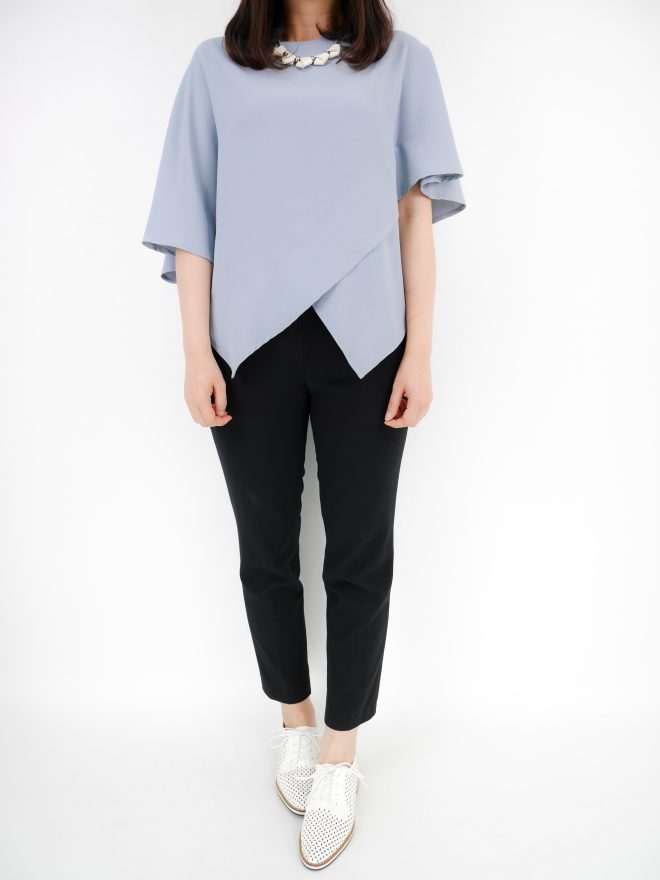 簡約不規則雪紡上衣 – 粉藍色