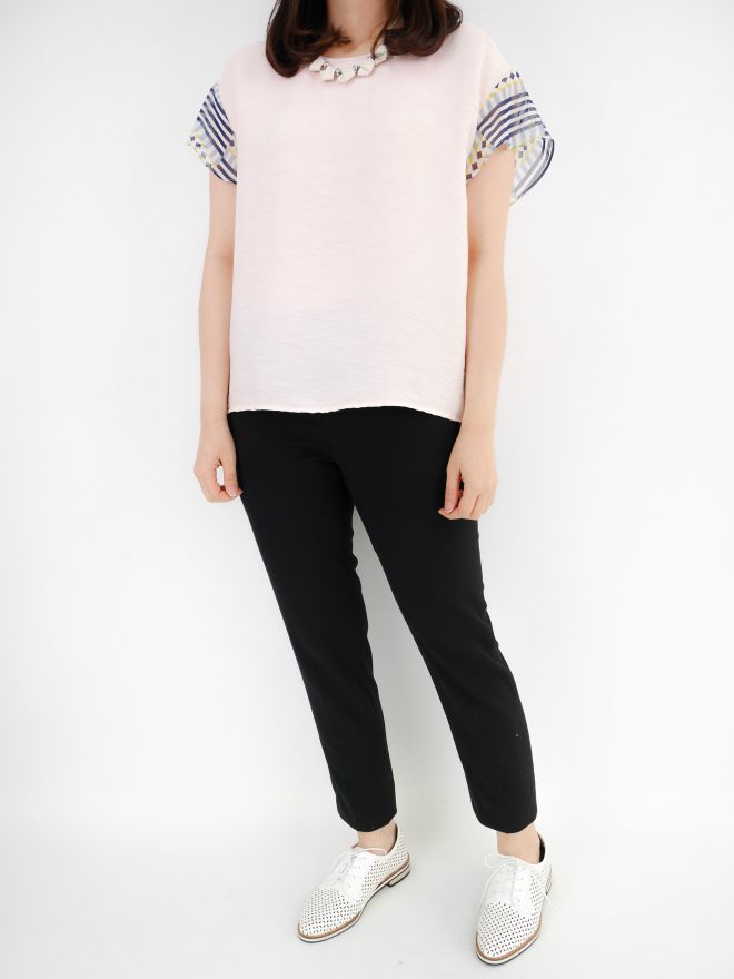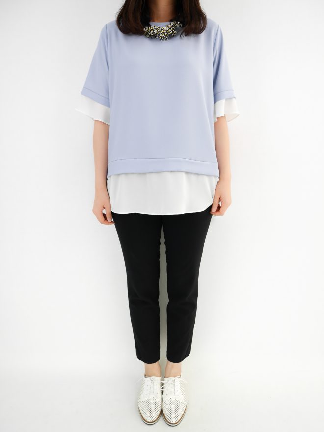 簡約接拼雪紡上衣 – 粉藍色