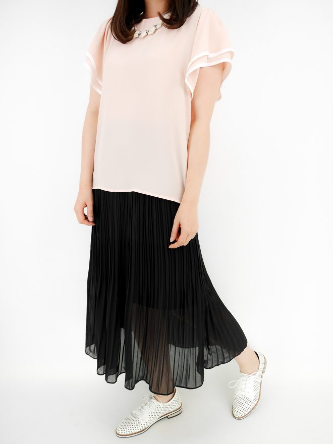 圖案雪紡袖暗紋上衣 – 粉紅色