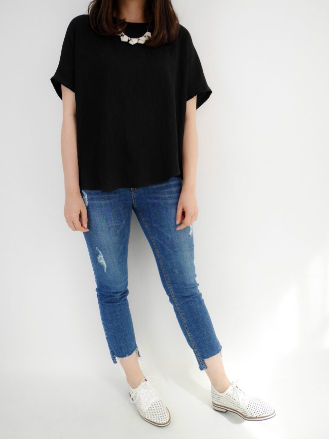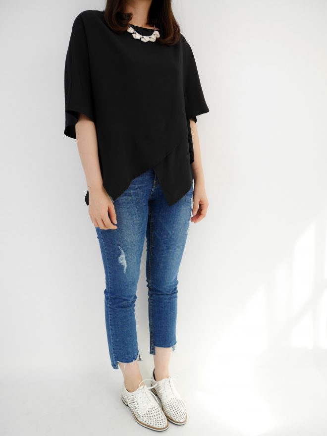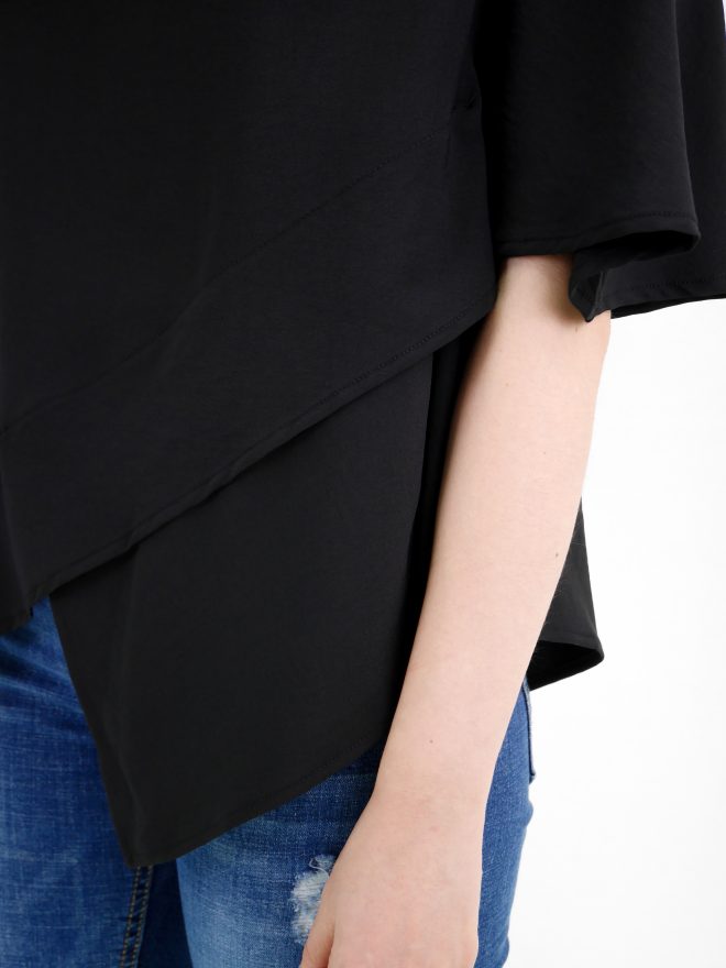 簡約不規則雪紡上衣 – 黑色