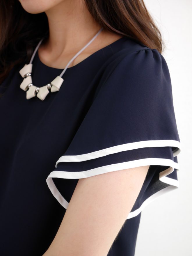 雙層寬袖圍邊雪紡上衣 – 白色