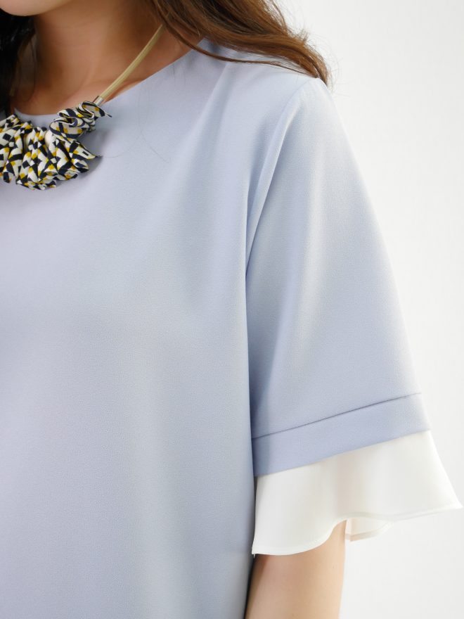 雙層寬袖圍邊雪紡上衣 – 粉藍色